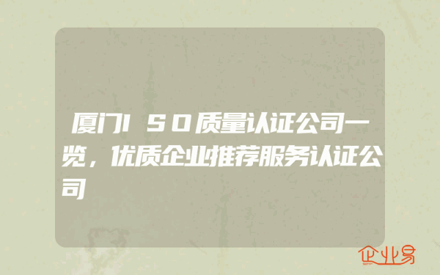 - 厦门ISO质量认证公司一览,优质企业推荐服务认证公司