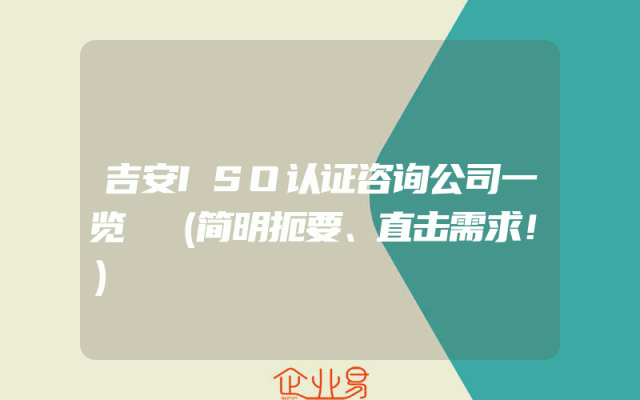 - 吉安ISO认证咨询公司一览 (简明扼要、直击需求!)