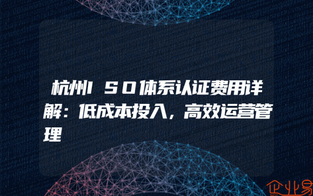 - 杭州ISO体系认证费用详解:低成本投入,高效运营管理