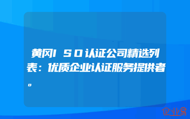 - 黄冈ISO认证公司精选列表:优质企业认证服务提供者。