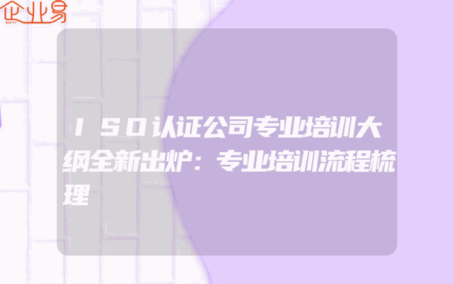 - ISO认证公司专业培训大纲全新出炉:专业培训流程梳理