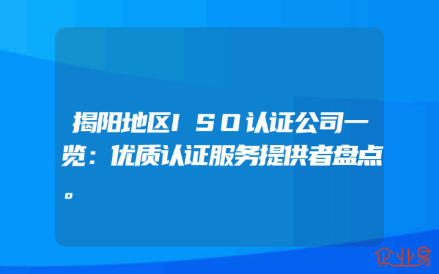 - 揭阳地区ISO认证公司一览:优质认证服务提供者盘点。