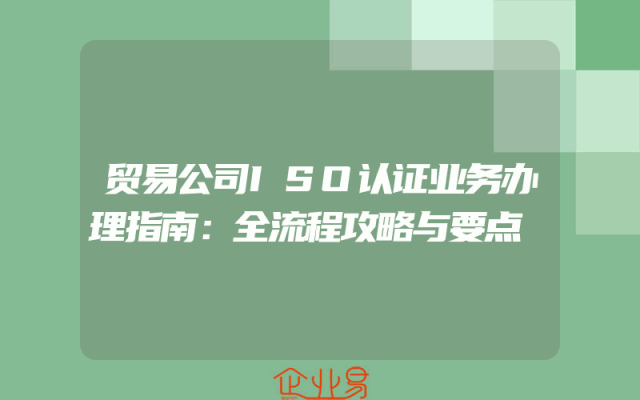 - 贸易公司ISO认证业务办理指南:全流程攻略与要点