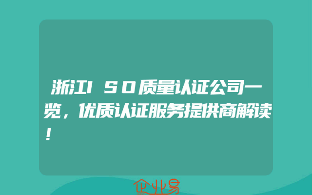 - 浙江ISO质量认证公司一览,优质认证服务提供商解读!