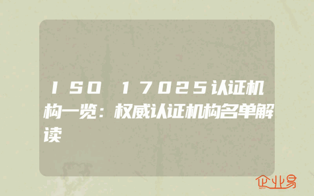 - ISO 17025认证机构一览:权威认证机构名单解读
