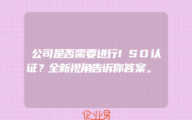 - 公司是否需要进行ISO认证?全新视角告诉你答案。