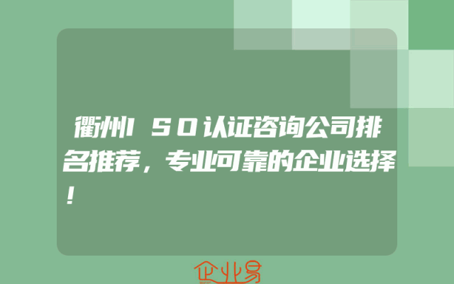 - 衢州ISO认证咨询公司排名推荐,专业可靠的企业选择!