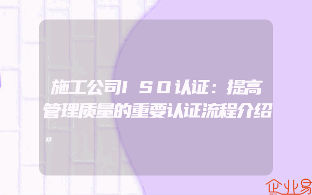 - 施工公司ISO认证:提高管理质量的重要认证流程介绍。