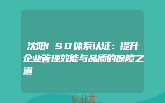 - 沈阳ISO体系认证:提升企业管理效能与品质的保障之道