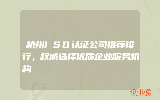 - 杭州ISO认证公司推荐排行,权威选择优质企业服务机构