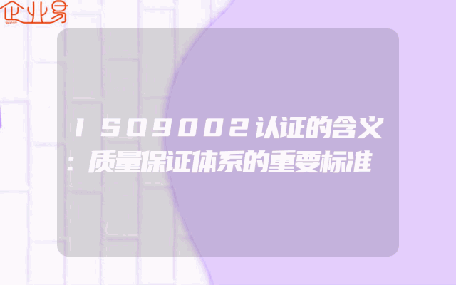 - ISO9002认证的含义解析:质量保证体系的重要标准一、ISO9002认证的基本概念ISO9002是ISO质量管理体系中的一个重要标准,主要关注生产和服务的质量管理要求。这一认证是对企业质量保证体系的一种评估和审核,确保企业按照设定的质量标