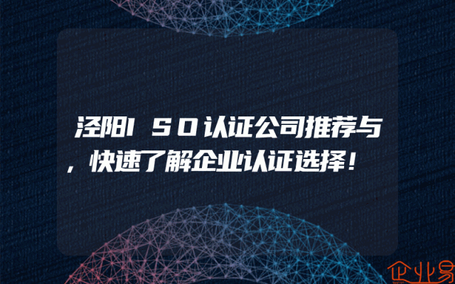 - 泾阳ISO认证公司推荐与,快速了解企业认证选择!