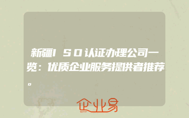 - 新疆ISO认证办理公司一览:优质企业服务提供者推荐。