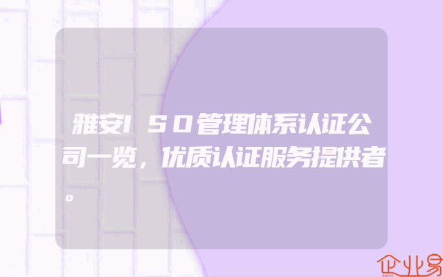 - 雅安ISO管理体系认证公司一览,优质认证服务提供者。