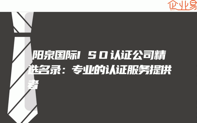 - 阳泉国际ISO认证公司精选名录:专业的认证服务提供者