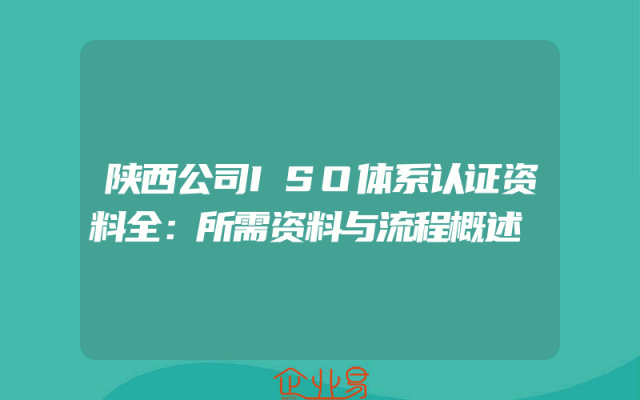 - 陕西公司ISO体系认证资料全:所需资料与流程概述