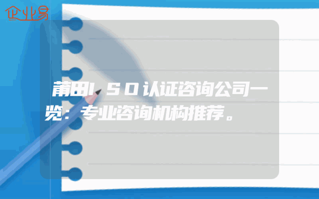 - 莆田ISO认证咨询公司一览:专业咨询机构推荐。