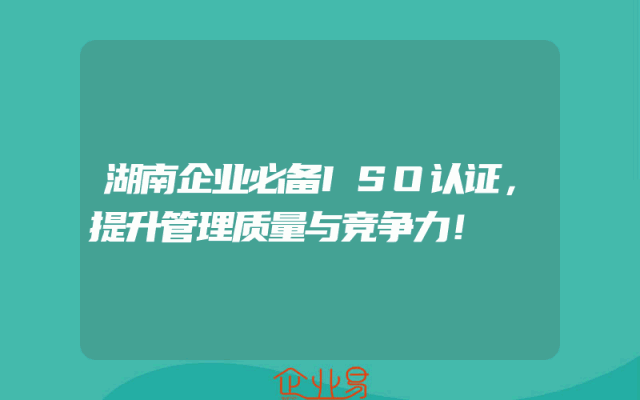 - 湖南企业必备ISO认证,提升管理质量与竞争力!
