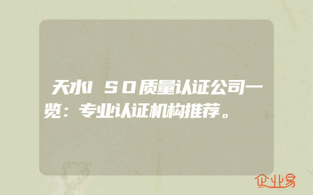 - 天水ISO质量认证公司一览:专业认证机构推荐。