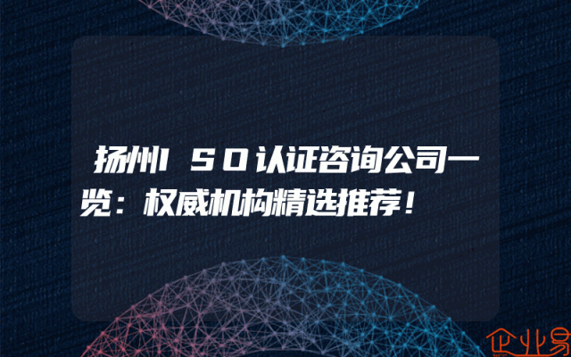 - 扬州ISO认证咨询公司一览:权威机构精选推荐!