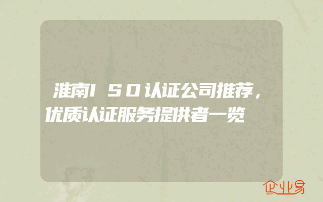 - 淮南ISO认证公司推荐,优质认证服务提供者一览