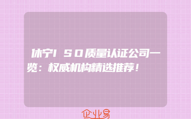 - 休宁ISO质量认证公司一览:权威机构精选推荐!