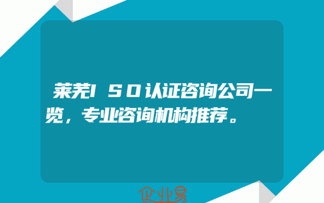 - 莱芜ISO认证咨询公司一览,专业咨询机构推荐。