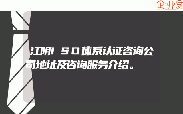 - 江阴ISO体系认证咨询公司地址及咨询服务介绍。