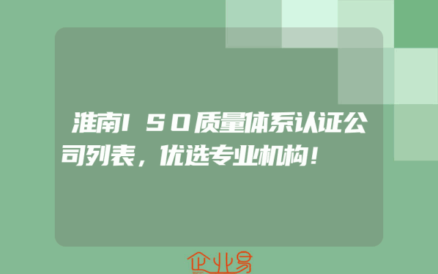 - 淮南ISO质量体系认证公司列表,优选专业机构!