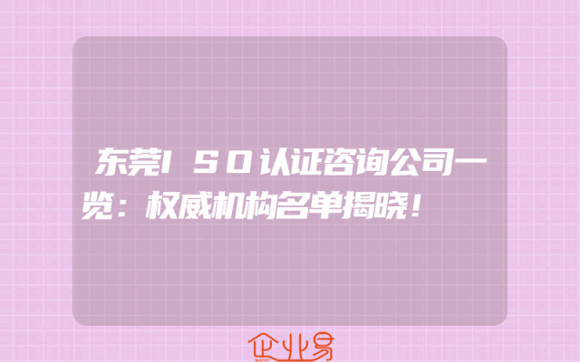 - 东莞ISO认证咨询公司一览:权威机构名单揭晓!