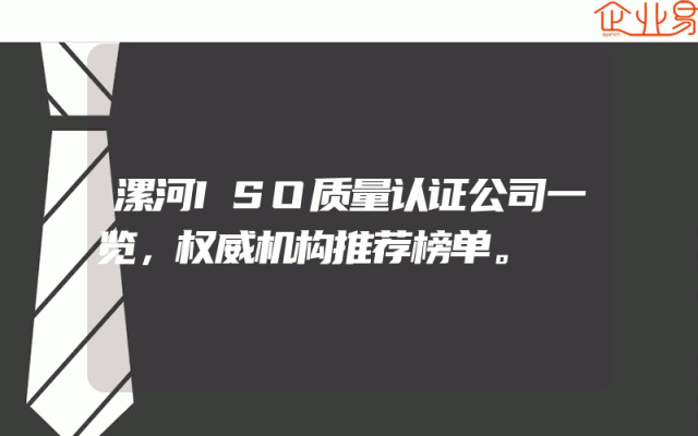 - 漯河ISO质量认证公司一览,权威机构推荐榜单。