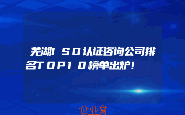 - 芜湖ISO认证咨询公司排名TOP10榜单出炉!