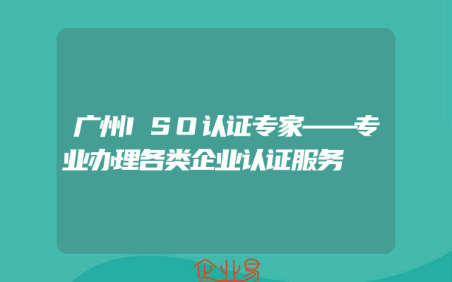 - 广州ISO认证专家——专业办理各类企业认证服务