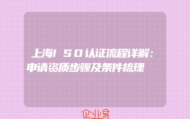 - 上海ISO认证流程详解:申请资质步骤及条件梳理