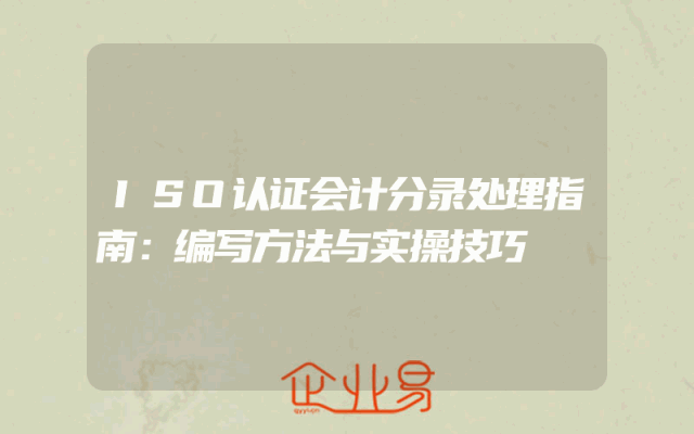 - ISO认证会计分录处理指南:编写方法与实操技巧一、了解ISO认证与会计分录的重要性在当今竞争激烈的市场环境下,ISO认证已成为企业提升管理水平和增强竞争力的关键手段。而在企业进行ISO认证过程中,会计分录的处理显得尤为重要。正确的会计分录能