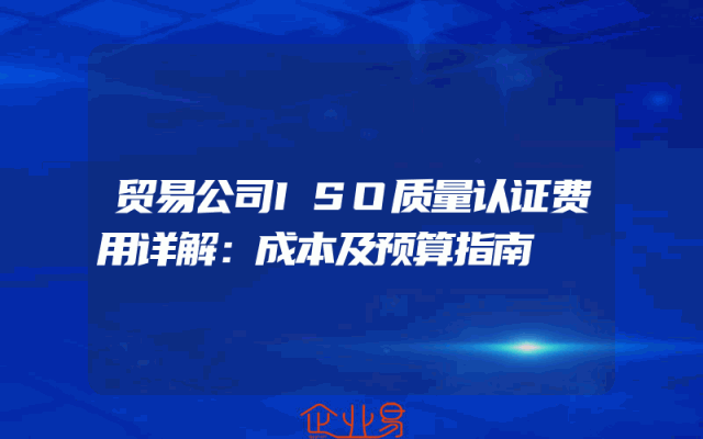 - 贸易公司ISO质量认证费用详解:成本及预算指南