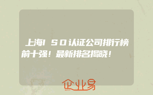 - 上海ISO认证公司排行榜前十强!最新排名揭晓!