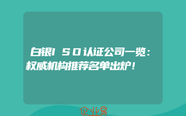 - 白银ISO认证公司一览:权威机构推荐名单出炉!