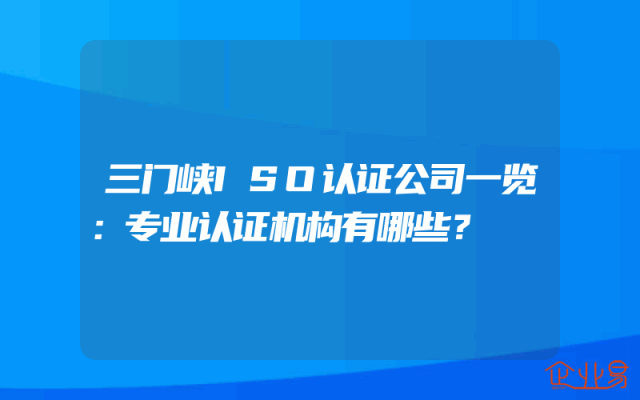 - 三门峡ISO认证公司一览:专业认证机构有哪些?
