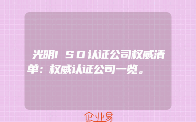 - 光明ISO认证公司权威清单:权威认证公司一览。