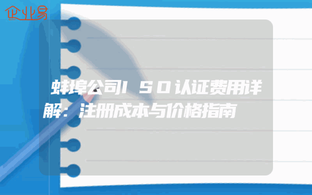- 蚌埠公司ISO认证费用详解:注册成本与价格指南