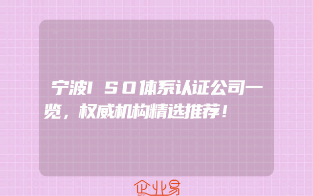 - 宁波ISO体系认证公司一览,权威机构精选推荐!
