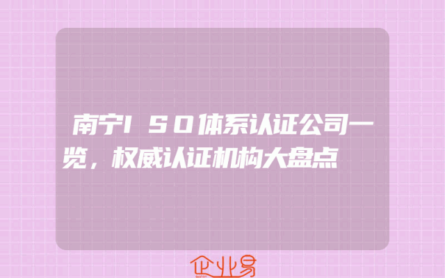 - 南宁ISO体系认证公司一览,权威认证机构大盘点