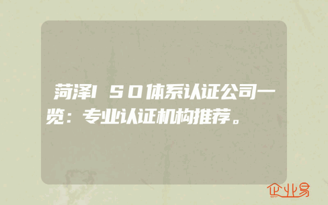 - 菏泽ISO体系认证公司一览:专业认证机构推荐。