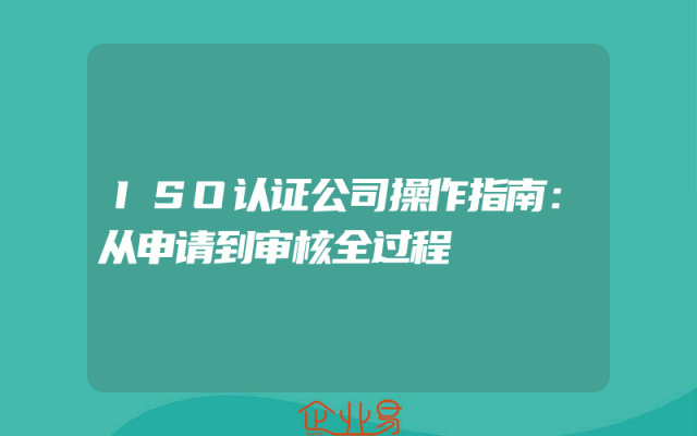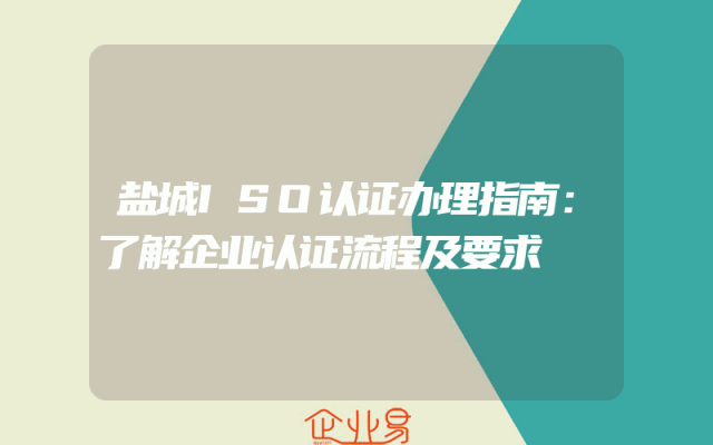 - 盐城ISO认证办理指南:了解企业认证流程及要求