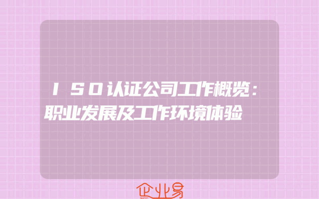 - ISO认证公司工作概览:职业发展及工作环境体验