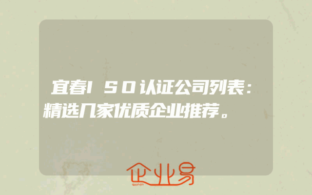 - 宜春ISO认证公司列表:精选几家优质企业推荐。