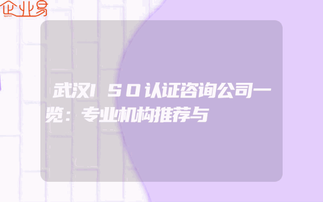- 武汉ISO认证咨询公司一览:专业机构推荐与