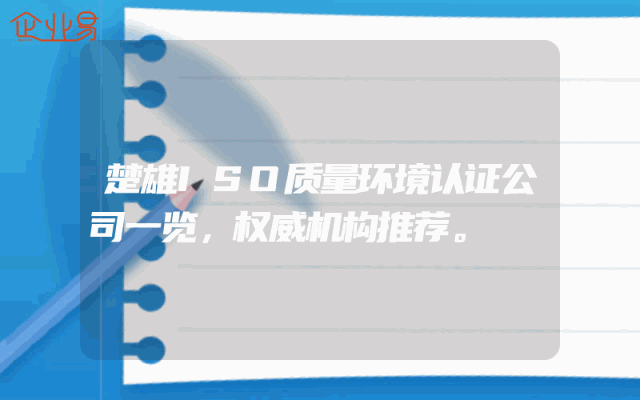 - 楚雄ISO质量环境认证公司一览,权威机构推荐。
