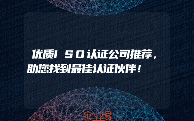 - 优质ISO认证公司推荐,助您找到最佳认证伙伴一、引言随着经济全球化进程的加快,企业面临的竞争压力日益增大。为了提升管理水平和市场竞争力,越来越多的企业选择进行ISO认证,以提升自身的品牌形象和核心竞争力。而选择一个专业的ISO认证公司,无疑